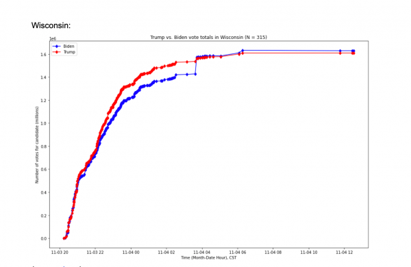 It starts out with the background on Michigan and Wisconsin — the famous “vote spikes” that were plainly ridiculous and fundamentally changed both the electoral reality and the narrative. The report reminds us of the infamous vote spikes in Michigan and Wisconsin.
