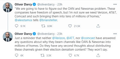 Just a reminder that neither @Verizon, @ATT, nor @comcast have answered any questions about why they beam channels like OAN & Newsmax into millions of homes. Do they have any second thoughts about distributing these channels given their election denialism content? They won’t say.